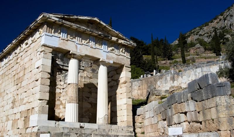 Upon arrival at Delphi, recognized as the center of the Ancient world—the 'Omphalos' (Navel) of the Earth—it is noteworthy that its prestige extended far beyond the confines of the Hellenic world. Nestled on the slopes of Mt. Parnassus, amidst a landscape of unparalleled beauty and majesty, lie the ruins of the Sanctuary of Apollo Pythios.