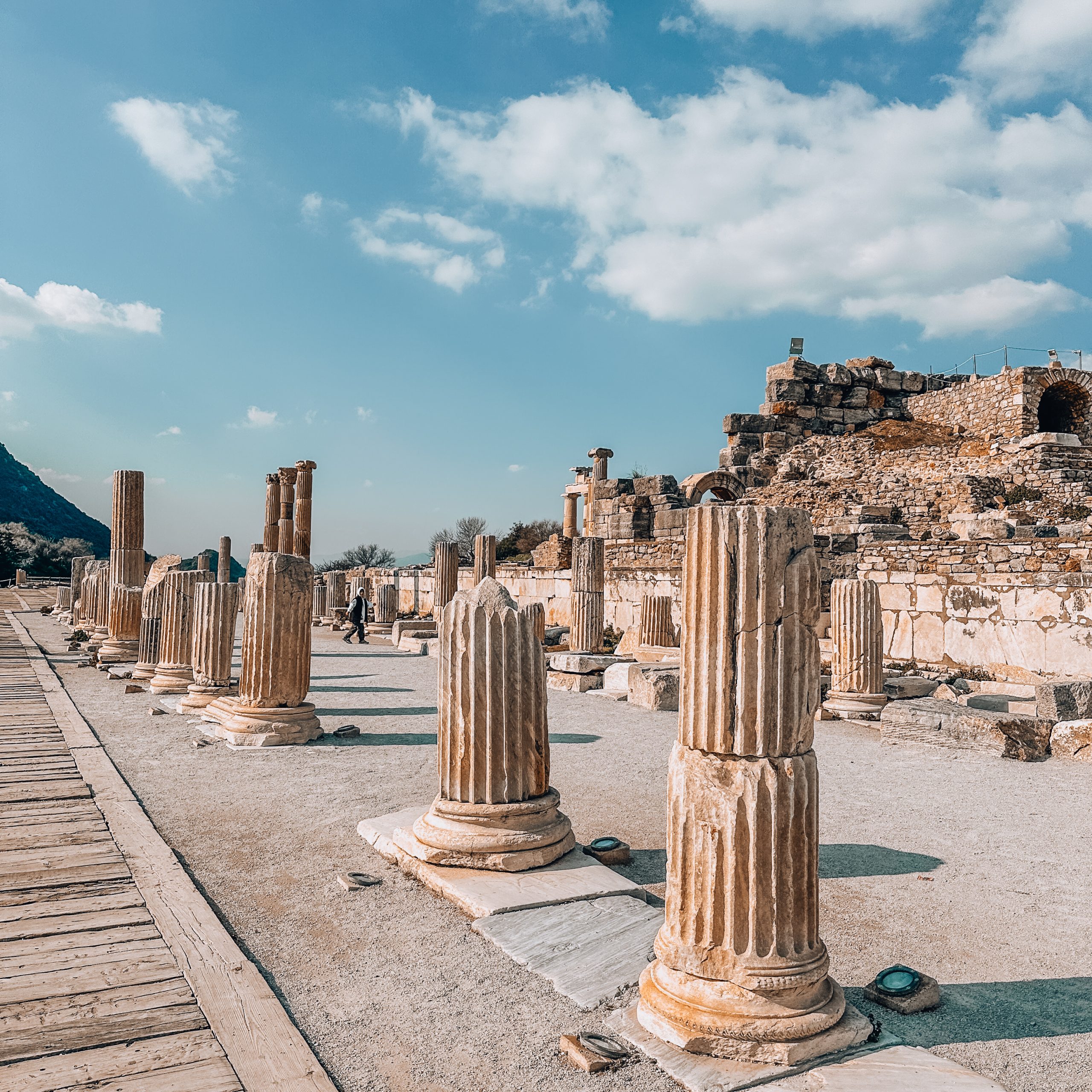 Following this, we will proceed to Ephesus, known for its archaeological significance. You can observe the Odeon, Fountain of Trajan, Baths of Scholastica, Temple of Hadrian, Grand Theater, and the impressive Library of Ephesus, remaining in excellent condition with majestic columns. Walking through Ephesus feels like stepping back in time among the Romans, surrounded by stunning sights. Also in Ephesus is the Grand Theater, where St. Paul is thought to have preached, and it is the most prominent outdoor theatre of the ancient world, seating 25,000. The most significant site in Selcuk is the Temple of Artemis (Diana), one of the Seven Wonders of the Ancient World. The Ephesus Artemis was a fertility goddess, depicted with eggs or multiple breasts.
