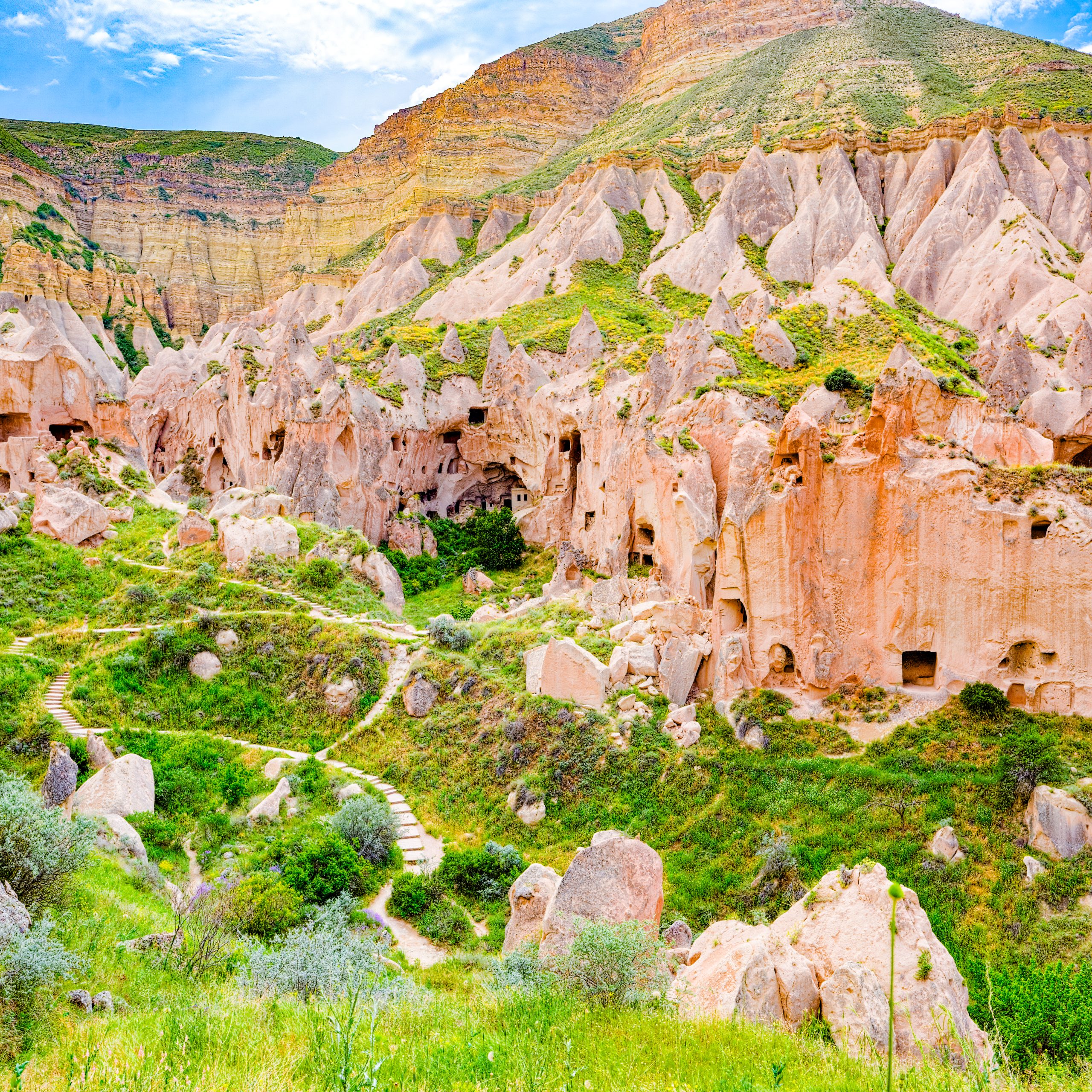 Red Valley is known for its stunning hiking trails. The two adjacent valleys allow seamless exploration. In Rose Valley, don’t miss Hacli Church and Ayvali Church, both with remarkable interiors. Next, we’ll visit the historic Christian Village of Cavusin and Pigeon Valley, where breathtaking views of cliffs and human-carved caves await.