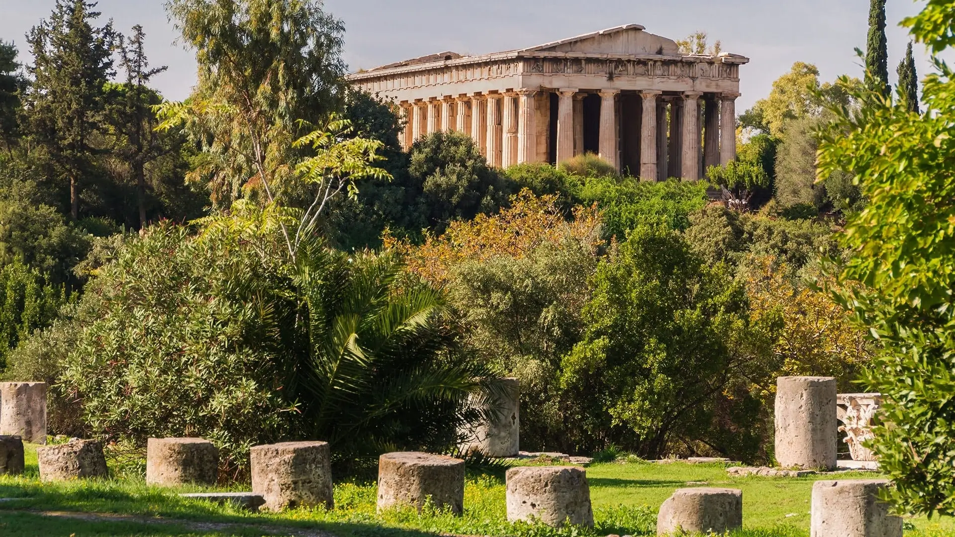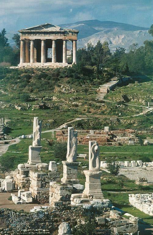 The Agora of Athens ; These ruins, located in the heart of modern Athens, were once the site of the marketplace in ancient times, a political, cultural and economic center of the ancient world.