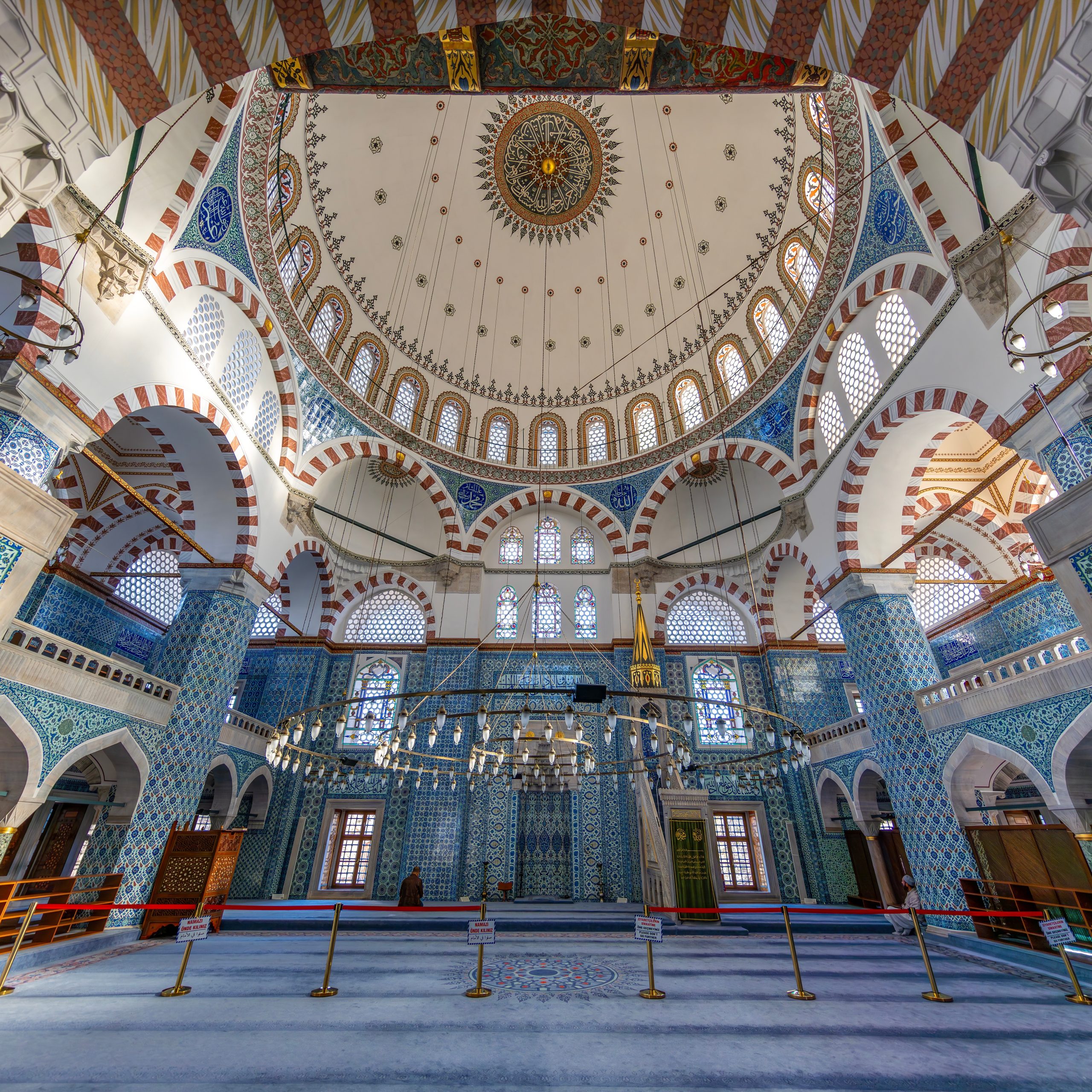 RUSTEM PASHA MOSQUE:Built by Mimar Sinan for Grand Vizier Rustem Pasha, this mosque is renowned for stunning İznik tilework featuring floral and geometric designs, exemplifying 16th-century ceramic art.