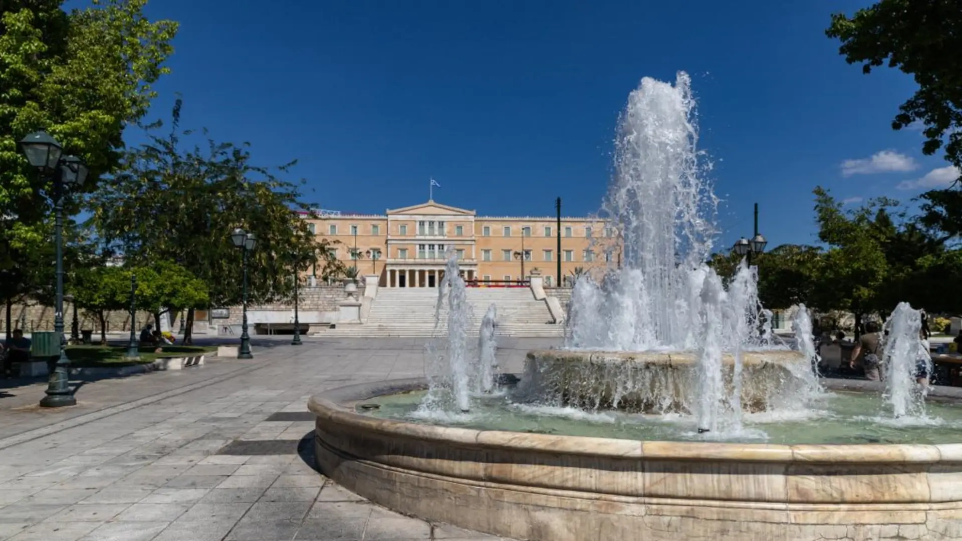 Syntagma Square ; The Syntagma Square (or Platía Syntágmatos) is the largest square in the modern part of the city of Athens. It is often very busy here because it is a well-known roundabout where major roads intersect and many buses and trams start and end here. It is also an important constitution square for politics in Greece. The parliament building is located here.